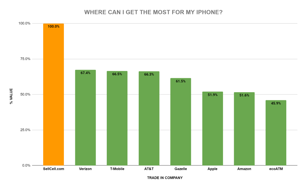 As you can probably see, there is no reason to start your trade-in journey anywhere else other than SellCell. We offer an unbiased approach to getting you the most cash for your phone, by searching through trade-in values offered by only the most trusted buyback vendors.