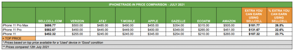 As we can see from the iPhone 11 data above, you can earn an additional $181.77 when you sell your iPhone 11 Pro Max with SellCell, compared to the next highest-paying buyer, Amazon. Likewise, you can earn $131.67 more than Amazon when you sell an iPhone 11 Pro with SellCell. If you’re looking so sell an iPhone 11, then you’ll get an additional $107.32 with SellCell compared to Amazon.